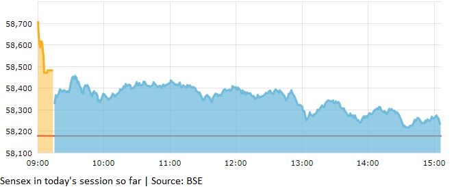 : Sensex is up 124.00 points or 0.21% at 58301.76, and the Nifty added 39 points or 0.22% at 17394.30. IndusInd Bank, HCL Tech and Hero MotoCorp are the top gainers while Zee Entertainment, IRCTC and Zomato are the most active stocks.