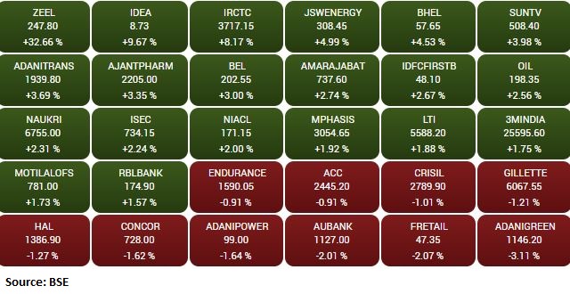 The midcap index added a percent led by Zee Entertainment, Vodafone Idea and IRCTC