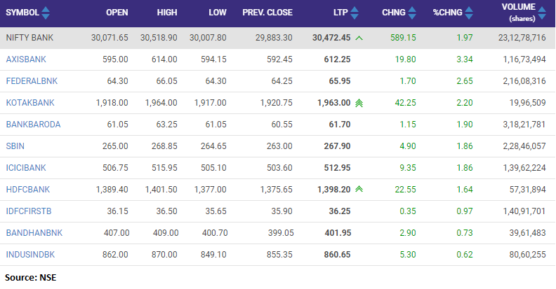 Bank Nifty added 2 percent led by Axis Bank, Federal Bank, Kotak Mahindra Bank and State Bank of India