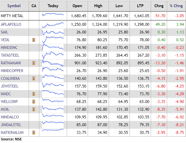 Metal Index down 3 percent led by the Nalco, Jindal Steel, Hindalco:
