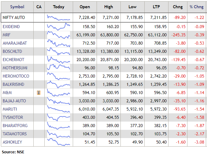 Nifty Auto Index shed over 1 percent dragged by the Ashok Leyland, Bharat Forge, Tata Motors: