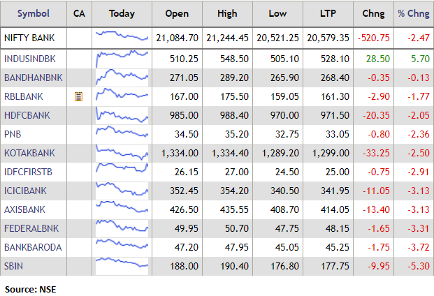 Nifty Bank closed a day at 20525 with loss of nearly 3 percent, support for Nifty Bank is coming near 20300-20000 zone and resistance is coming near 20800-21000 zone.