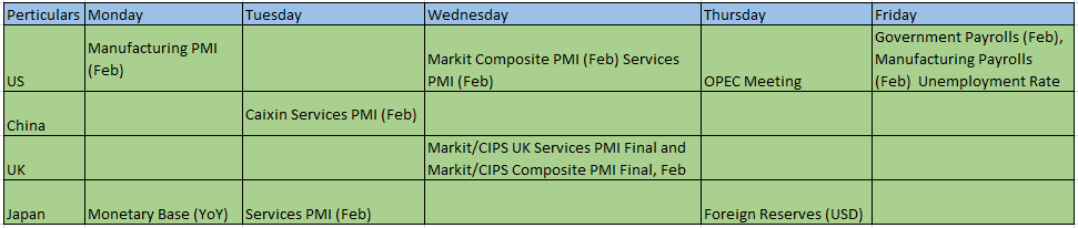 India Manufacturing PMI and Service PMI numbers to be release on March 2 and March 4, respectively. The country's manufacturing sector activity climbed to a near eight-year high in January, driven by a sharp rise in new business orders.