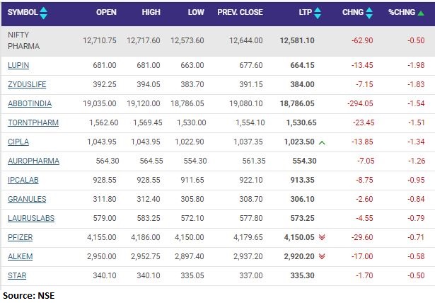 Nifty Pharma index fell 0.5 percent dragged by the Lupin, Abbott India, Zydus Lifesciences