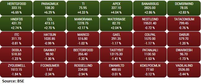 BSE Fast Moving Consumer Goods index shed 0.5 percent dragged by the Vadilal Industries, Emami, Kokuyo Camlin