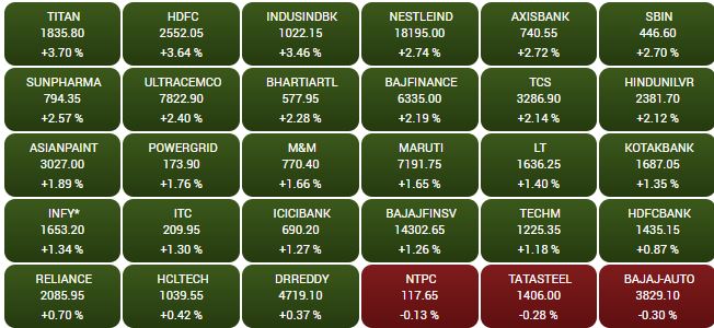 Nifty made a strong bullish bar today. It opened at 15,951 and closed with 246 points in positive. Nifty managed to cross all its resistance and closed at 16,130.75. Volumes on Nifty were higher than average which indicates strength. We can expect nifty to touch 16,250 and 16,400 in the coming days. On the lower side, 15,950 and 15,880 will act as strong support.