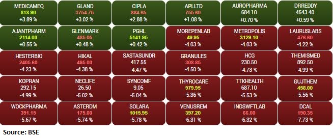 BSE Healthcare index fell 1 percent dragged by the Dishman Carbogen Amcis, IND-Swift Laboratories, Solara Active Pharma Sciences