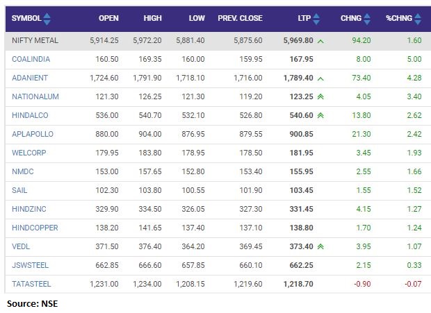 Nifty Metal index rose 1 percent led by the Coal India, Adani Enterprises, NALCO