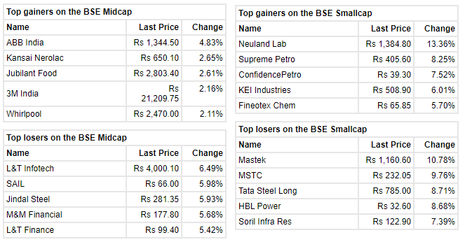 All the sectoral indices ended lower led by metal (down 4 percent), while auto, PSU bank and pharma indices shed 2 percent each. BSE Midcap and Smallcap indices shed 2 percent each.