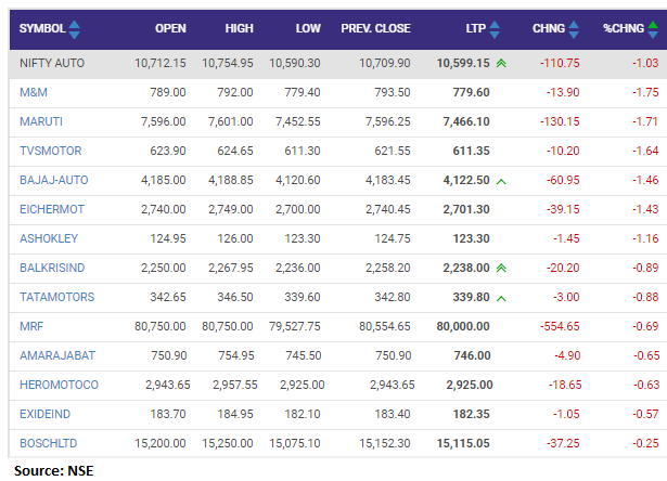 | Nifty Infra | 9393.60 | -95.20 | -1.00% |
