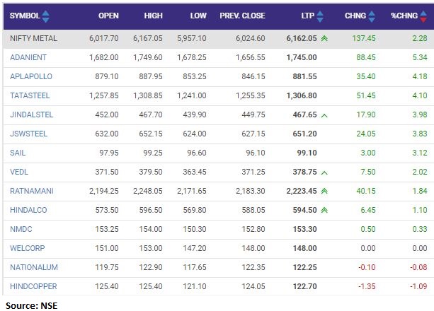 Nifty Metal index rose 1 percent supported by the Adani Enterprises, APL Apollo, Tata Steel