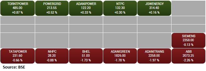 BSE Power index shed 0.5 percent dragged by the ABB, Adani Transmission, Adani Green