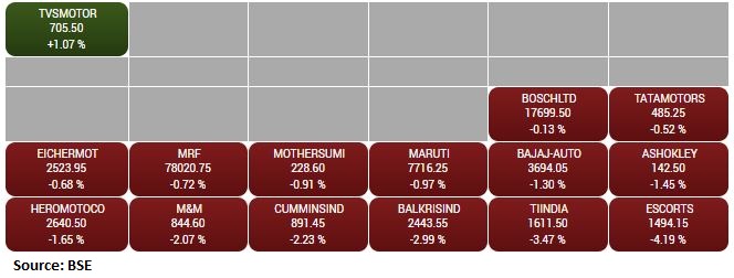 BSE Auto index slipped over 1 percent dragged by the Escorts, Tube Investment, Balkrishna Industries