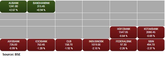 After a positive opening, the index wiped out early losses and showed profit booking from higher levels, and closed the session at 17999.20 levels with a loss of 110.25 points. While Bank Nifty closed the session at 38307.10 level with a loss of 395.25 points.