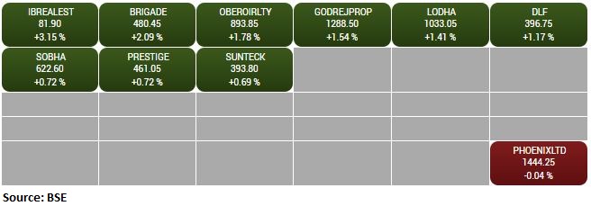 BSE Realty index added 1 percent led by the Indiabulls Real Estate, Brigade Enterprises, Oberoi Realty