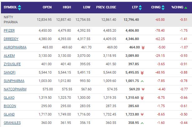 Nifty pharma index shed 0.5 percent dragged by the Pfizer, Dr Reddy's Laboratories, Aurobindo Pharma