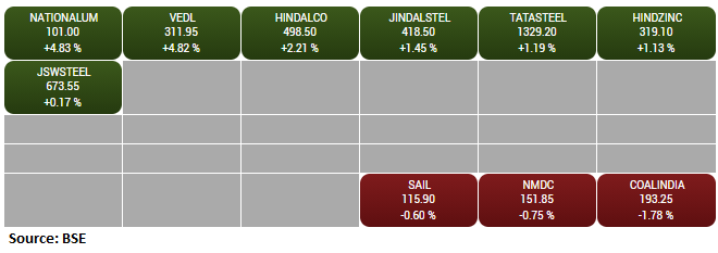 BSE Metal index rose 1 percent led by the NALCO, Vedanta, Hindalco Industries