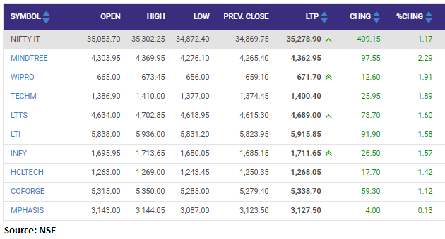 Nifty IT index added 1 percent led by the Mindtree, Wipro, Tech Mahindra