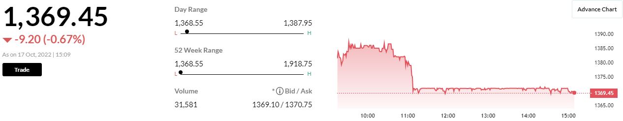 : V-Mart Retail has entered into a business transfer agreement dated October 17, 2022 with A.M. Marketplaces and certain other parties for the acquisition of its LimeRoad Business (as defined below in Annexure I), as a going concern, on a slump sale basis, for a lump sum consideration. The consummation of the transaction is subject to certain conditions precedent and closing conditions, as agreed under the terms of the Business Transfer Agreement. The stock was trading at Rs 2,730.05, down Rs 35.25, or 1.27 percent on BSE. It has touched an intraday high of Rs 2,819.00 and an intraday low of Rs 2,686.85. It was trading with volumes of 1,891 shares, compared to its five day average of 922 shares, an increase of 105.14 percent.