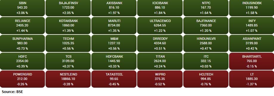 State Bank of India, Indian Bank, Canara Bank and Bank of Baroda are among the top sectoral gainers. In fact, with over 3 percent gain, SBI is also the top Nifty and Sensex gainer.