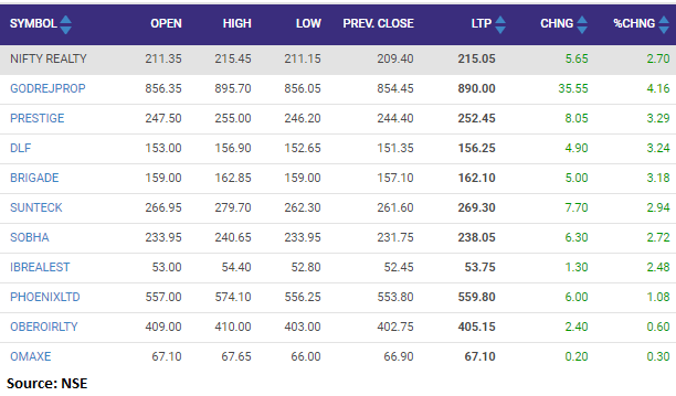 | Nifty Metal | 10159.00 | 46.35 | +0.46% |