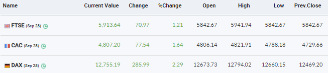 Benchmark indices ended higher for the second day in a row on September 28 on the back of buying seen across the sectors.