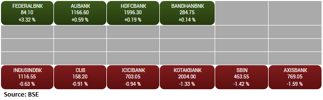 BSE Bankex index fell 1 percent dragged by the Axis Bank, SBI, Kotak Mahindra Bank