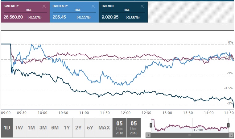 Automobile, banks, consumption, infrastructure, metals and pharma are in the red, while the Nifty Midcap index is down around 2 percent.