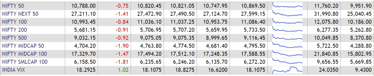 Equity benchmarks have extended their losses, with the Nifty well below 10,800.