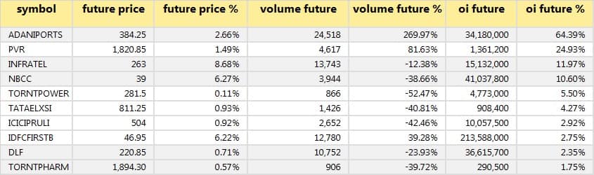 Based on open interest (OI) future percentage, here are the top 10 stocks in which long buildup was seen: