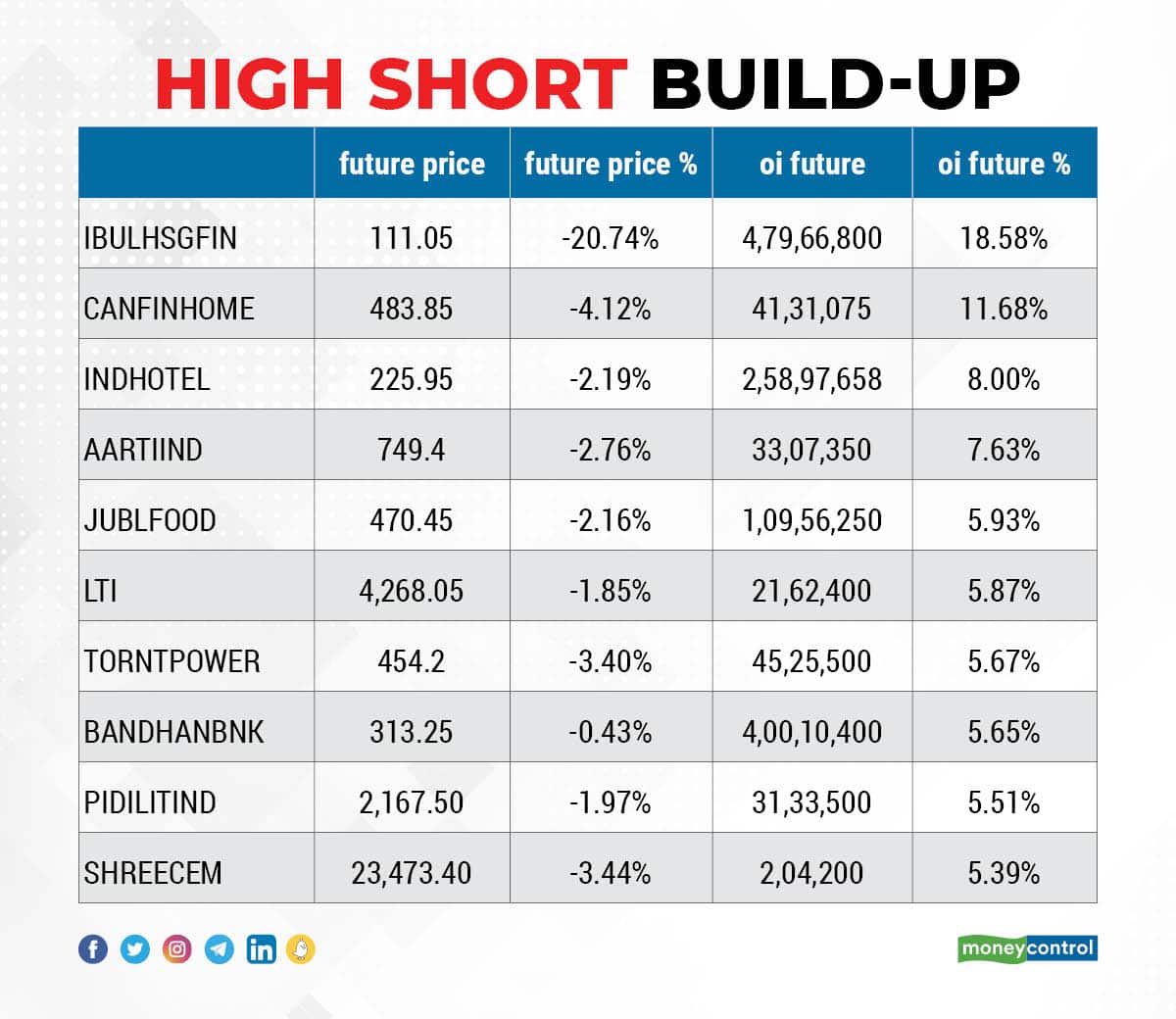 An increase in open interest, along with a decrease in price, mostly indicates a build-up of short positions. Based on the open interest future percentage, here are the top 10 stocks including Indiabulls Housing Finance, Can Fin Homes, Indian Hotels, Aarti Industries, and Jubilant Foodworks, in which a short build-up was seen.