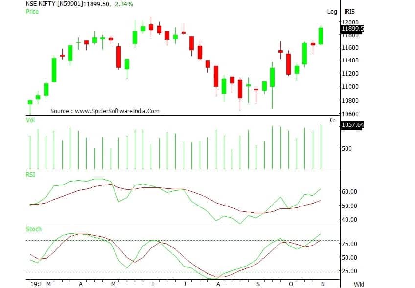 The Nifty started the week on a flat note, however, buying momentum throughout the week led the index to end on a strong note. The Nifty closed at 11,900 with a gain of 272 points on a weekly basis.