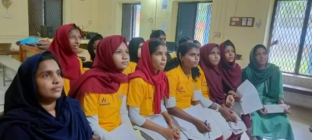 Students from Phoolbun Hosapet in Karnataka learning how to code for the payloads on AzaadSat 2.0