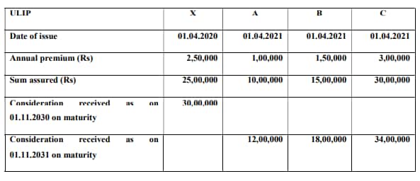 Taxability: In this case, proceeds received under Ulip X will not attract any tax. Since the policyholder will pay renewal premiums on this policy in year 2022 as well, that amount will be considered to calculate the aggregate premium. So, maturity proceeds received under Ulip X and Ulip B – with total premium under these policies amounting to Rs 2.5 lakh in 2022 – will be eligible for tax benefits under section 10(10D). Now, Ulip C is certainly not eligible for the tax exemption as the annual premium is more than Rs 2.5 lakh.