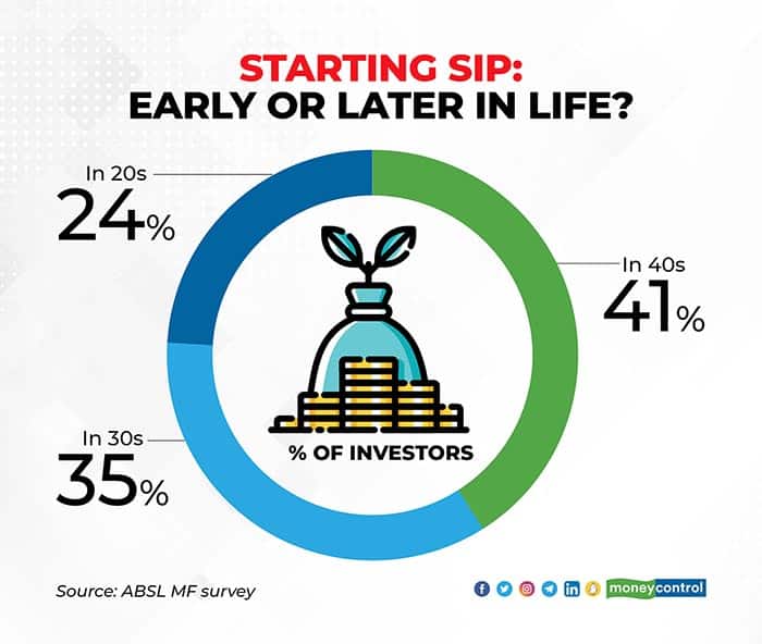 Over 40 percent of the investors that were surveyed started their first SIP in their 40s, 35 percent in their 30s, and 24 percent in their 20s. This was despite the age band of 20-25 showing greater awareness of SIPs.