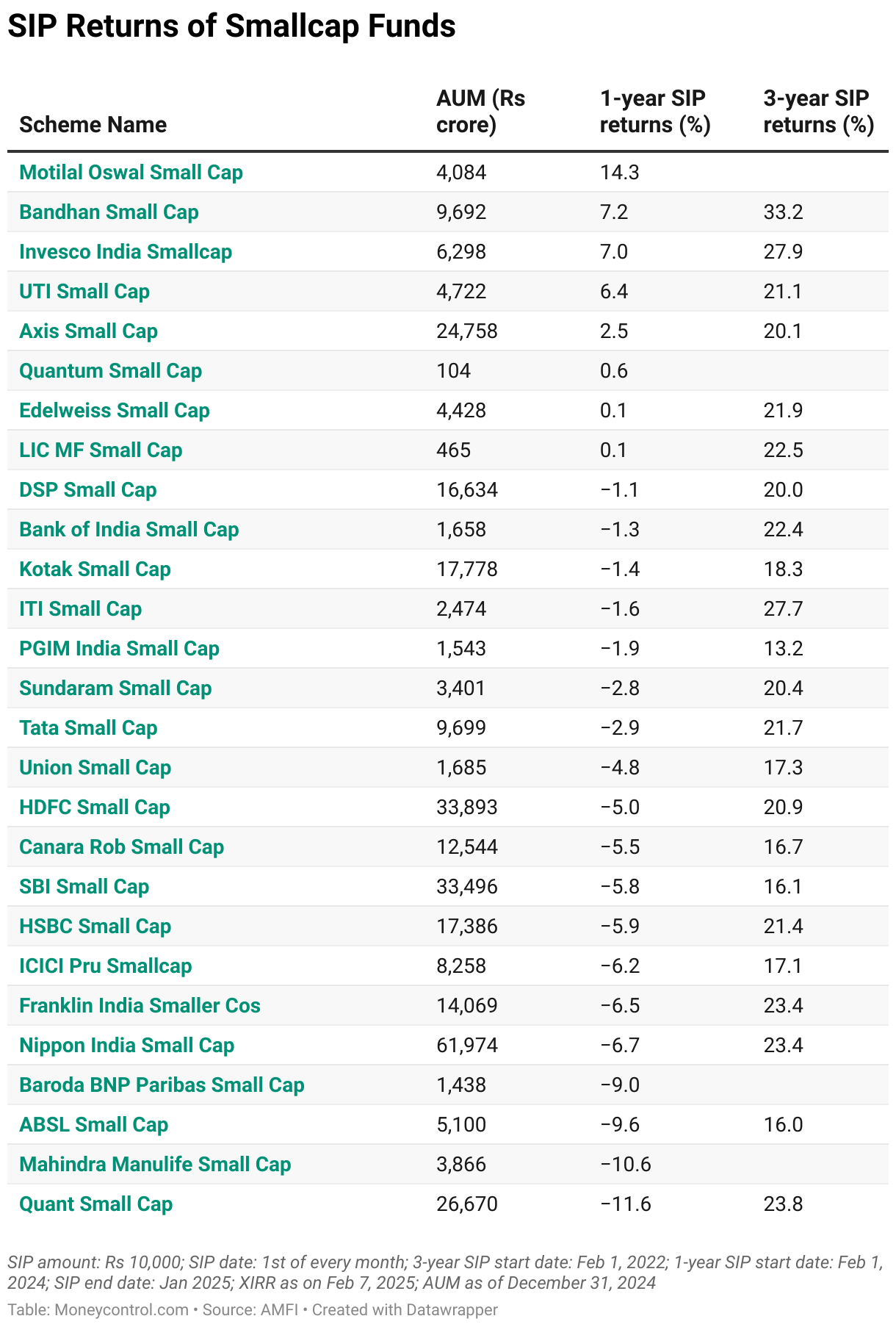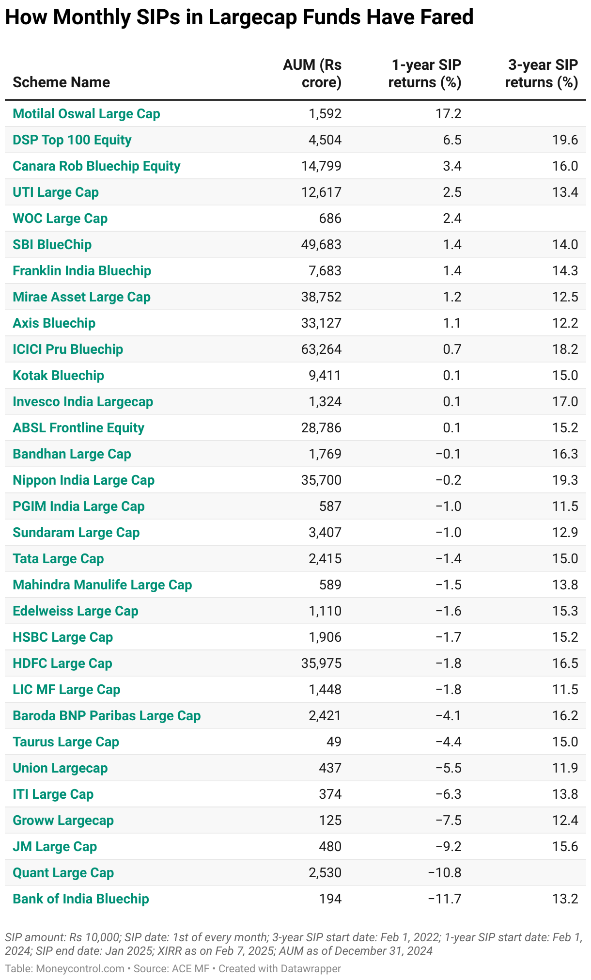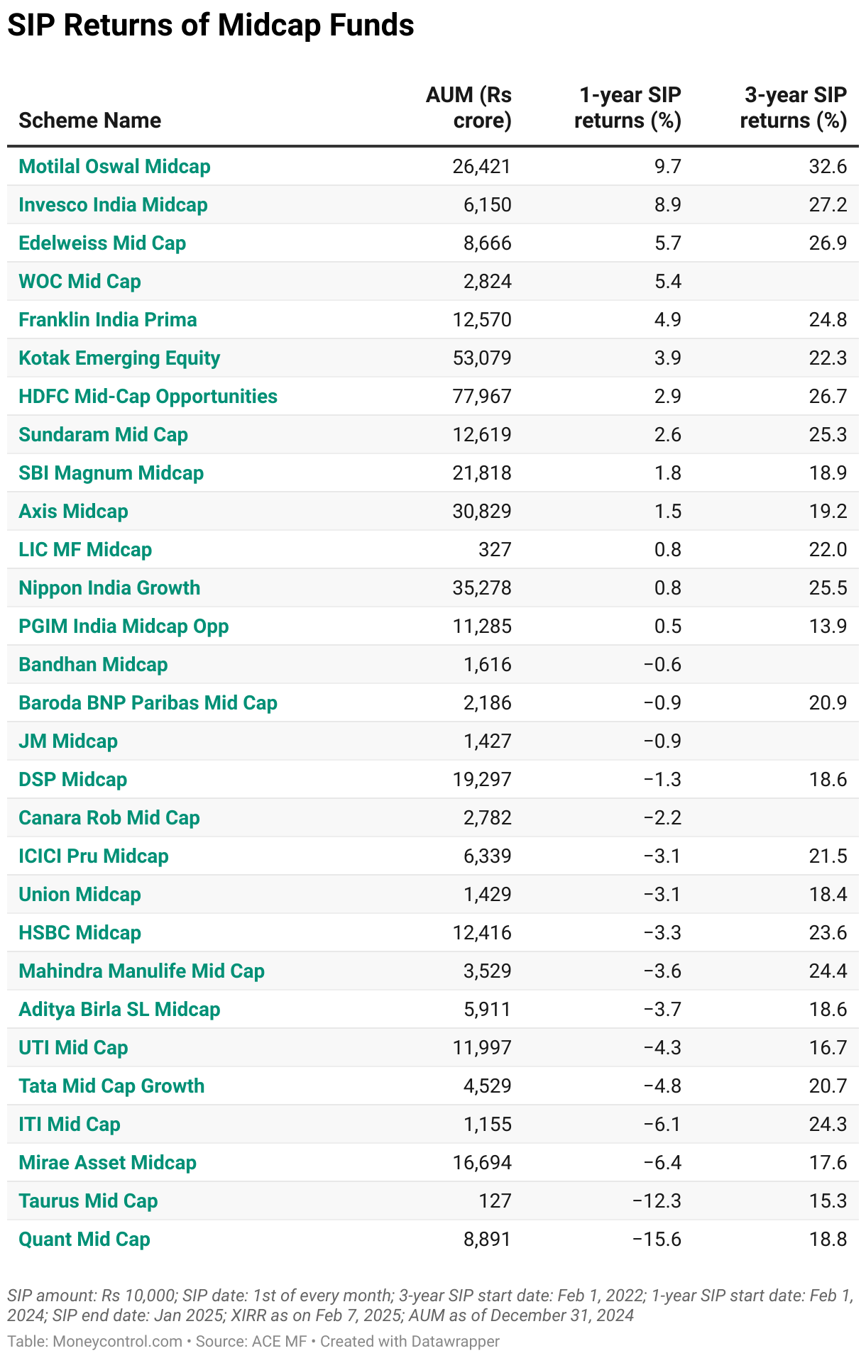SIP amount: Rs 10,000; SIP date: 1st of every month; three-year SIP start date: February 1, 2022; One-year SIP start date: February 1, 2024; SIP end date: January 2025; Extended Internal Rate of Return (XIRR) as on February 7, 2025.