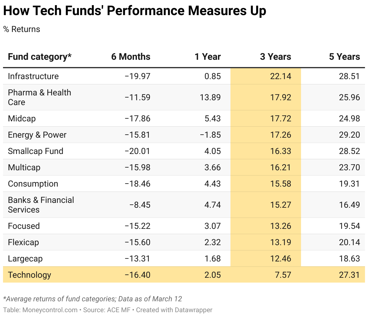 Over the long term (five years), the information technology (IT) funds have been among the top performers but returns have remained muted over a three-year period.