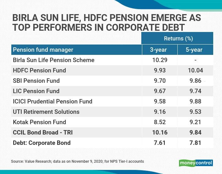 Other pension fund managers’ Schemes C (corporate debt) did well, too, posting returns between 8.52 percent and 9.93 percent during the period, data from Valueresearch shows. They trounced their corporate bond mutual fund counterparts, which recorded a category average of 7.61 percent, but could not beat the benchmark – CCIL Bond Broad TRI (10.16 percent).