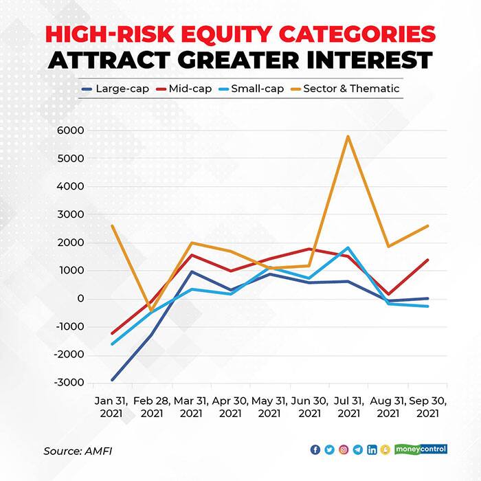 The sector and thematic fund categories have also seen several new fund offerings (NFOs). Clearly, investors seem willing to take on more risks in their pursuit of higher returns.