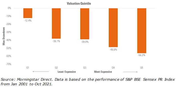 Stocks at rarely bought at fair valuations. You either buy overvalued or undervalued stocks. Hence, making a fair assessment of market valuations helps in restricting portfolio drawdowns as the exposure to an overvalued asset will be limited.