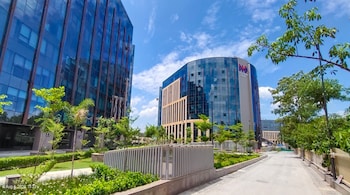 World Trade Centre is redeveloped as a commercial centre, which is being constructed in place of 628 dilapidated quarters in Nauroji Nagar area along the ring road. The project encompasses about 25 acres of land and features 12 towers, each with 10 floors.