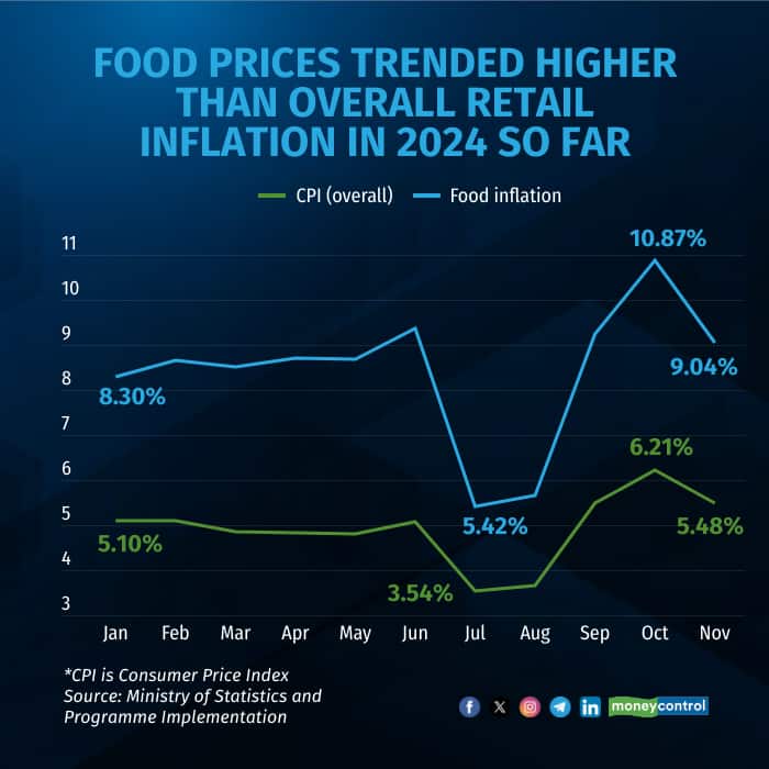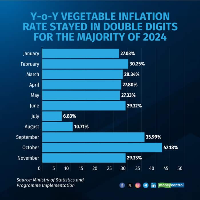Food inflation was primarily driven up by vegetables during the 11 months of 2024. The Consumer Price Index (CPI) data for December will be released on January 12.