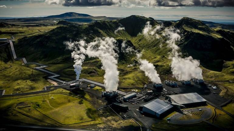 The CO2 is then mixed with the water before being injected at a depth of 1,000 metres into the nearby basalt rock where it is petrified.