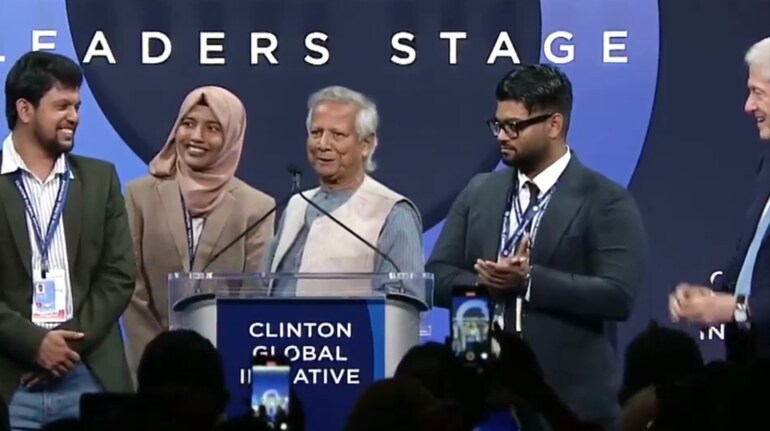 Yunus was speaking at the Clinton Global Initiative on the sidelines of the UN General Assembly in New York, with former US President Bill Clinton standing next to him.