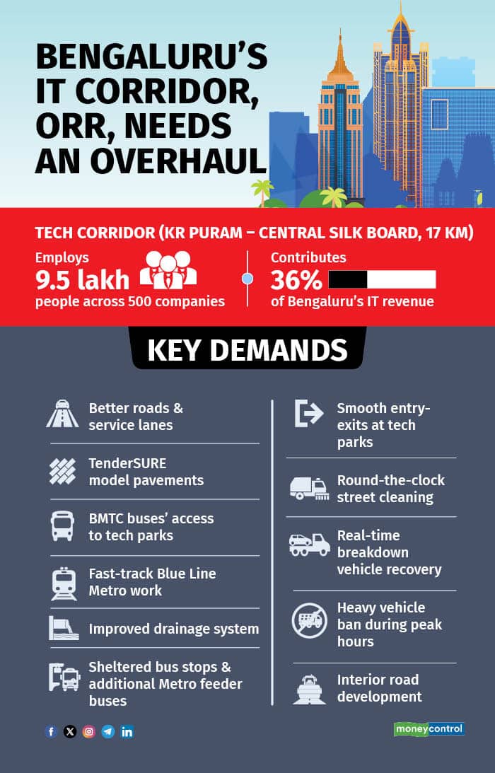 Bengaluru's tech corridor — Outer Ring Road (Central Silk Board - KR Puram) — is home to global tech giants that build digital infrastructure for the world, e-commerce firms promising quick deliveries, and companies offering mobility and financial solutions.