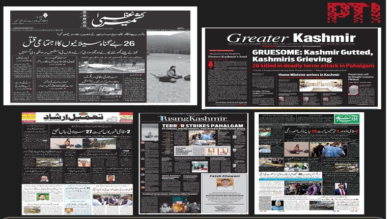 In a poignant gesture of grief and defiance, several leading newspapers in Jammu and Kashmir published their front pages entirely in black on Wednesday, condemning the brutal terrorist attack in Pahalgam that claimed the lives of 28 people.