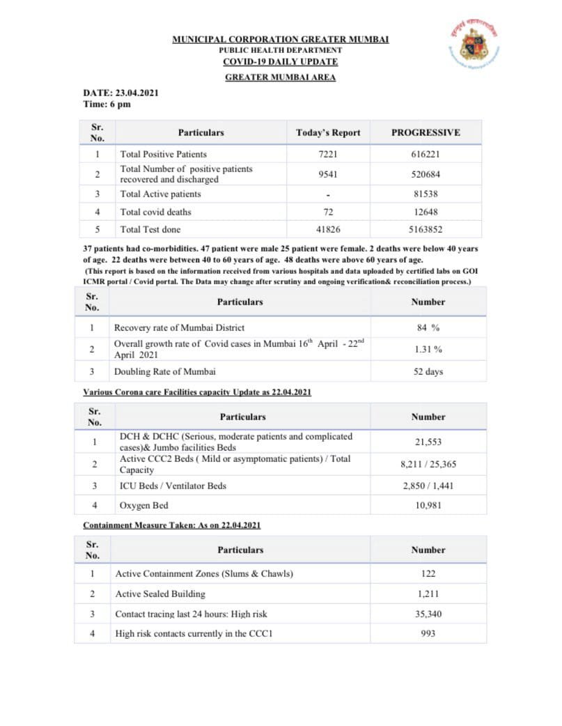 Coronavirus India Highlights: As many as 3,32,730 more people tested positive for Covid-19 in the last 24 hours, taking the cumulative caseload to 16,263,695, the Union health ministry said on Friday morning. The graph of daily new cases has gone up again, with India clocking in over 3 lakh for the second day in a row. Maharashtra continues to be the biggest contributor to the daily tally. The state reported 67,468 new infections on Thursday. It is followed by Uttar Pradesh with 33,106 while Delhi reported 24,638 new cases. The virus seems to be spreading faster across the country than in the first wave. There were 317 districts—or 44% of all districts—that reported more than 1,000 new cases in the past seven days. Further, there are 70 districts, across 16 states, where the number of new weekly cases exceeded 5,000 in the past week. A month ago, the number of such districts was just nine, all in Maharashtra. On the death toll front, 2,263 more people succumbed to the disease in the last 24 hours. The cumulative fatalities in the country now stand at 1,86,920. There are 27 states where the number of Covid-19 deaths has increased for two weeks running. India's regulator has granted restricted emergency use approval for three vaccines — Covishield, Covaxin and Sputnik V. All persons above the age of 45 are eligible to get vaccinated. Globally, more than 14.04 crore people have been infected by the novel coronavirus and 30.08 lakh have died so far, as per the John Hopkins Coronavirus Resource Centre.