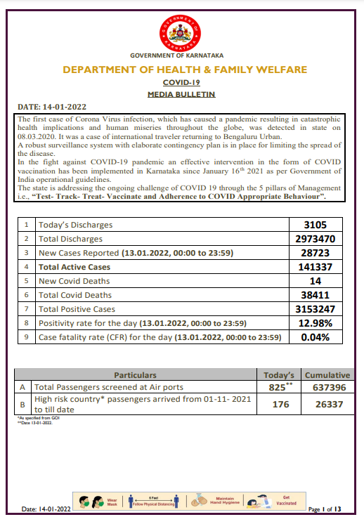 Karnataka Health Minister K. Sudhakar said Covid cases have doubled in the state in three days during the 3rd wave, much faster than the first two waves. Meanwhile, test positivity rate in Bengaluru has hit 20 per cent as cases rose to 18,374 on Friday, he said.