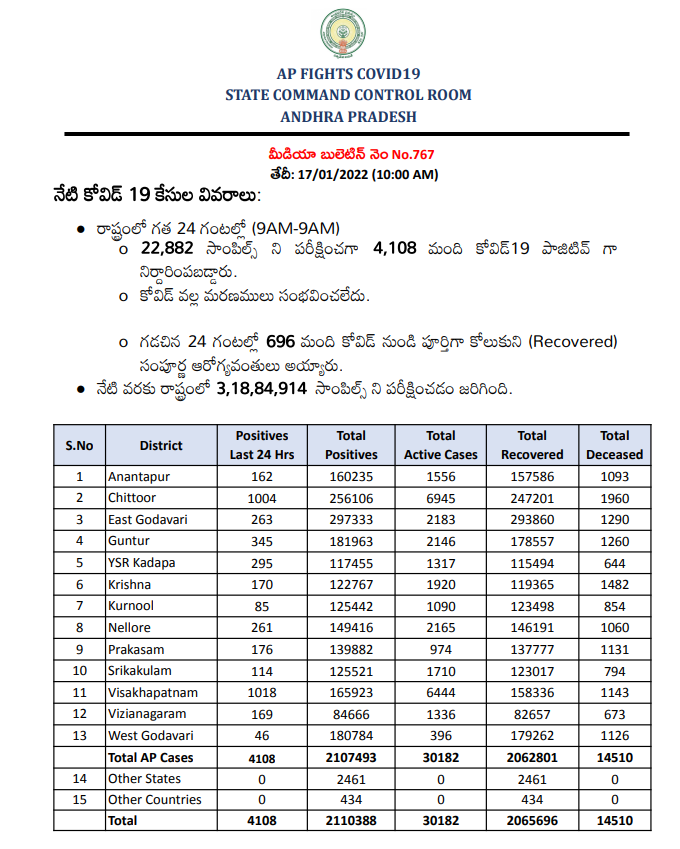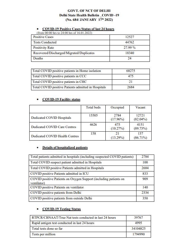 The daily positivity rate was recorded at 19.65 per cent, while the weekly positivity rate was 14.41 per cent, according to the ministry. The number of people who have recuperated from the disease surged to 3,52,37,461, while the case fatality rate was recorded at 1.30 per cent.