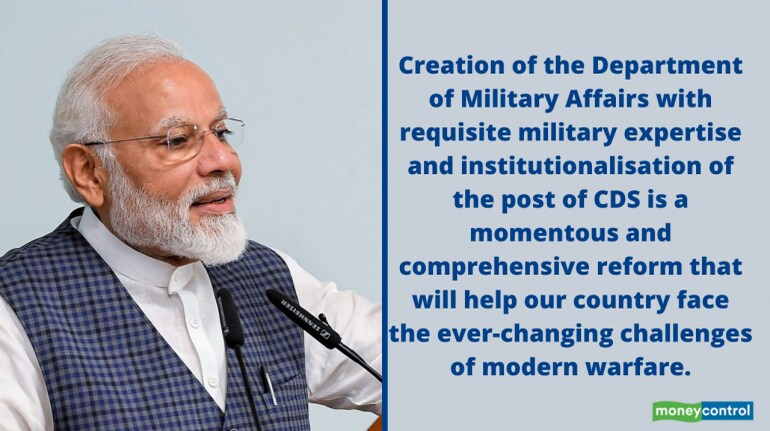 "Creation of the Department of Military Affairs with requisite military expertise and institutionalisation of the post of CDS is a momentous and comprehensive reform that will help our country face the ever-changing challenges of modern warfare," the prime minister tweeted.